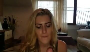 Rumänische Blondine Freundin lutscht Schwanz und bekommt Überraschungsgesicht